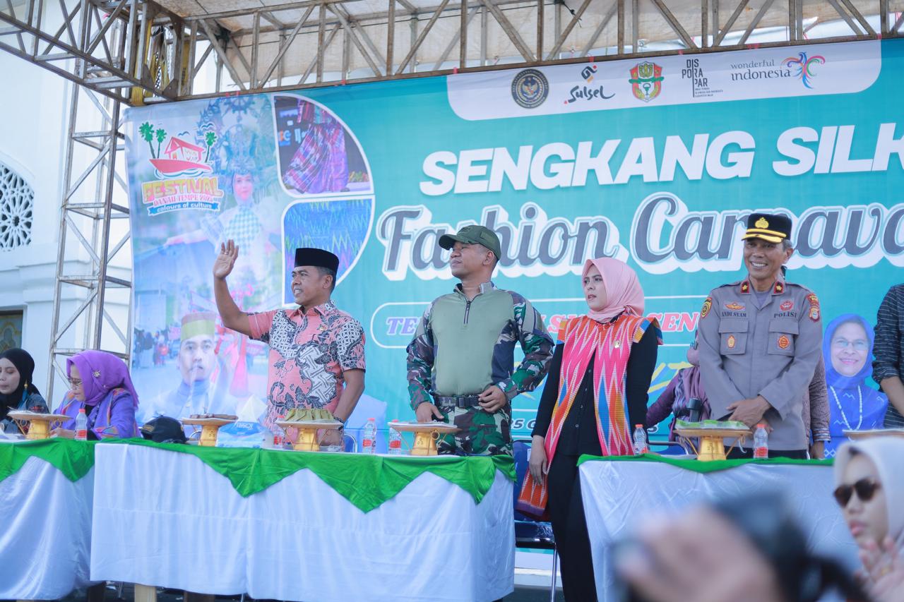 Para peserta secara bergantian melintas di depan Bupati sambil menampilkan kreativitas sutra. Di panggung kehormatan tampak Bupati Wajo Andi Rosman, Ketua DPR RI fraksi PAN, Andi Yuliani Paris, Wakil Ketua DPRD Wajo, Andi Merly Iswita dan jajaran Forkopimda turut hadir.