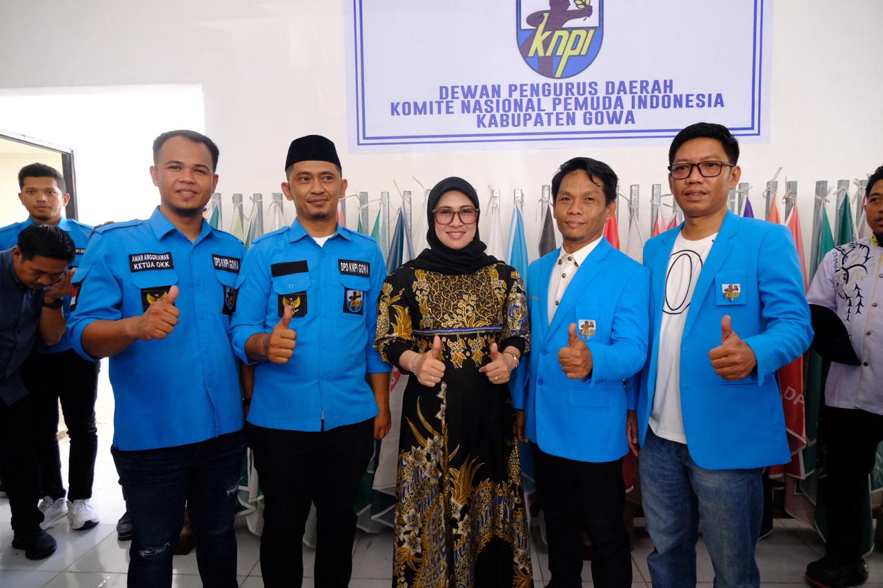 Bupati Gowa Husniah Talenrang diapit oleh pengurus KNPI Gowa.