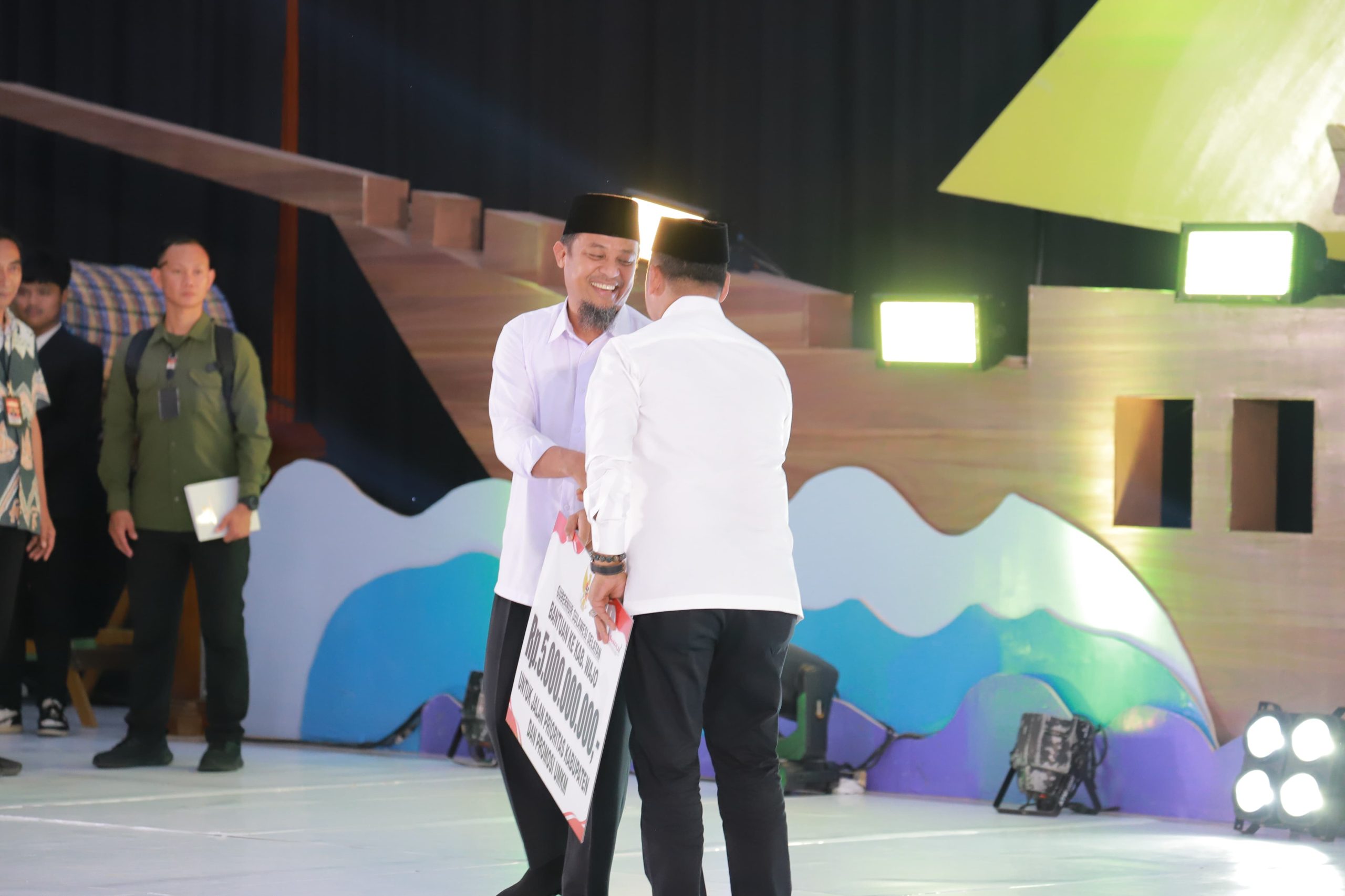 Bantuan diserahkan Sudirman secara simbolik kepada Bupati Wajo Andi Rosman pada pembukaan MQKI ke-1 di Kampus III Pondok Pesantren As’adiyah Macanang, Kecamatan Majauleng, Kabupaten Wajo, Kamis (2/10/2025).